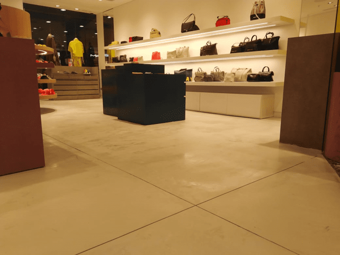 Para BIMBA Y LOLA, en el Mall Alto las Condes, Santiago, desarrollamos la asesoría y comercialización para la reparación de sus pisos con acabado cementicio a través de nuestro producto ARDEX SD-M™. El cual permite un acabo liso, permanente, artístico y duradero para pisos interiores.